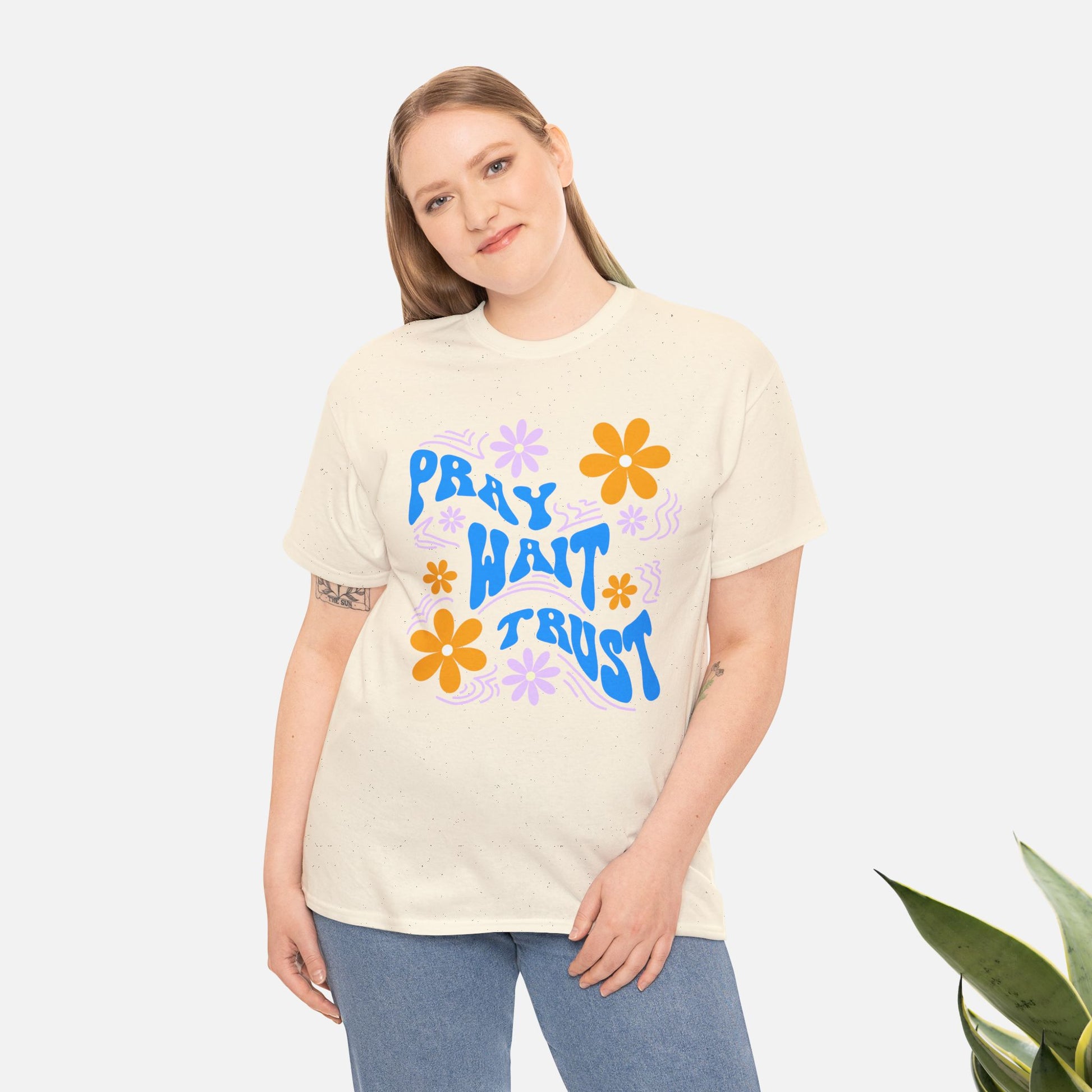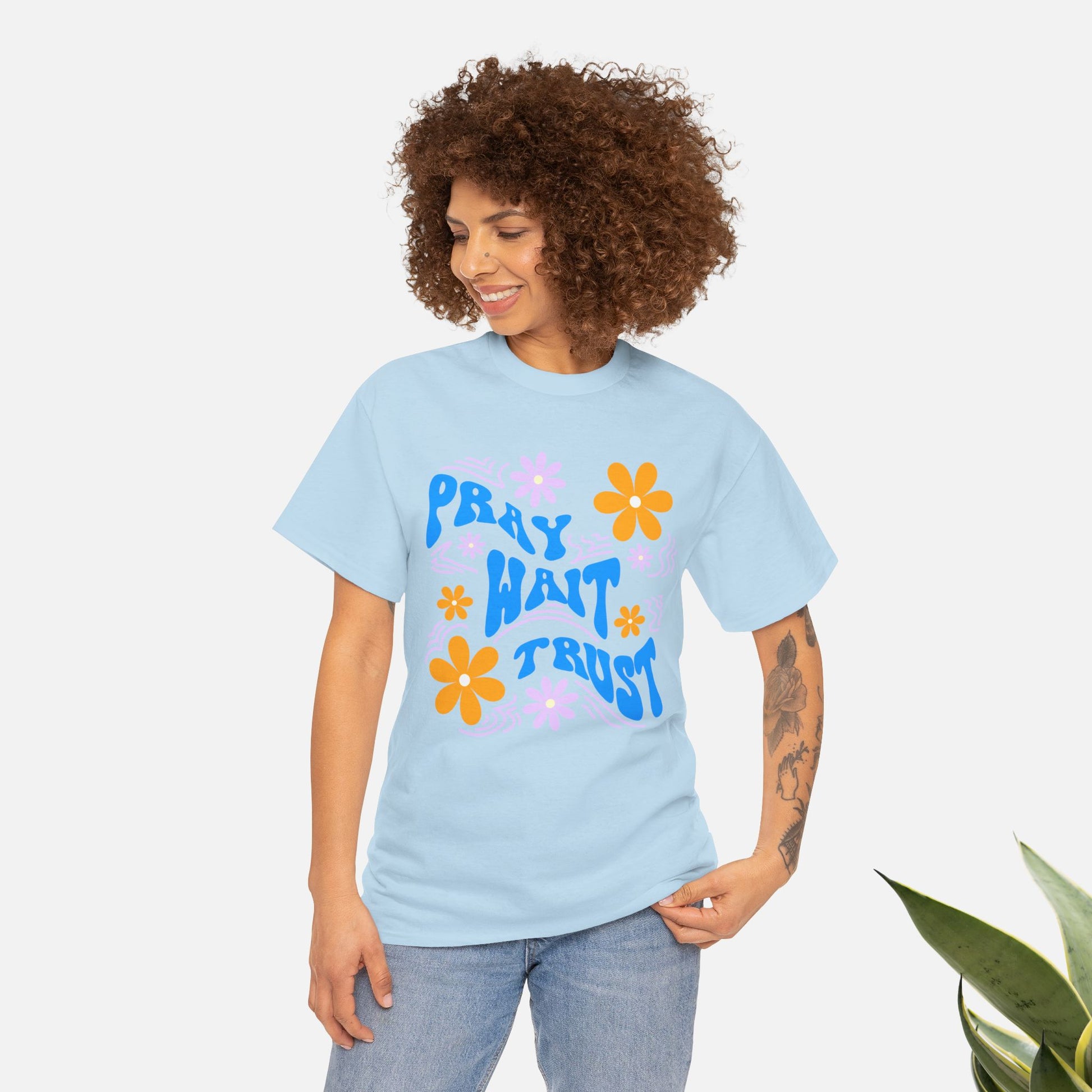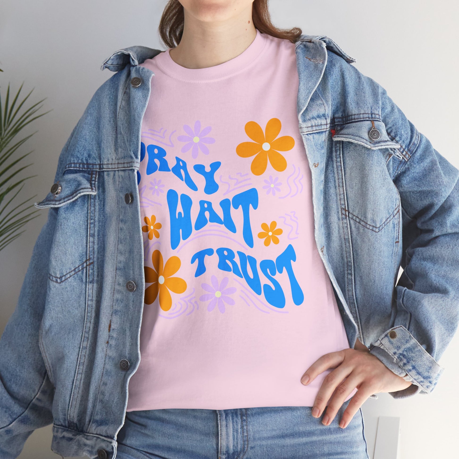 Camiseta de algodón "Pray, Wait, Trust"
